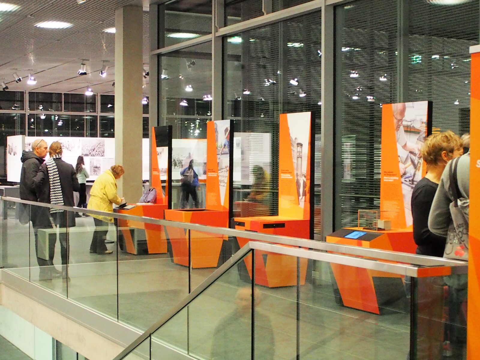 In der kleinen Ausstellung, die sich an der Wand zum Innenhof der Topographie des Terrors entlangzieht, werden die verschiedenen Facetten des Projektes beleuchtet. Dr.ChristineFischer-Defoy bezeichnete den Standort als Antwort auf das, was die Besucher in der Dauerausstellung der Stiftung sehen, als Zeichen, was danach kommt. Ein schönes Bild, nur leider steht die Ausstellung dazu in der falschen Reihenfolge und man sollte sie auch nicht als Antwort sehen. Sondern als Geschichte.